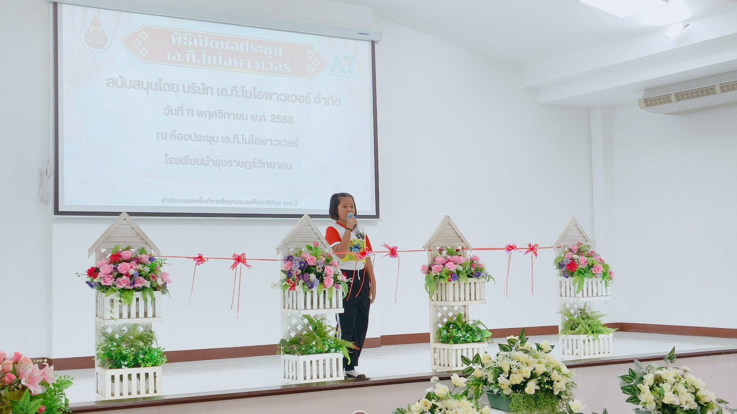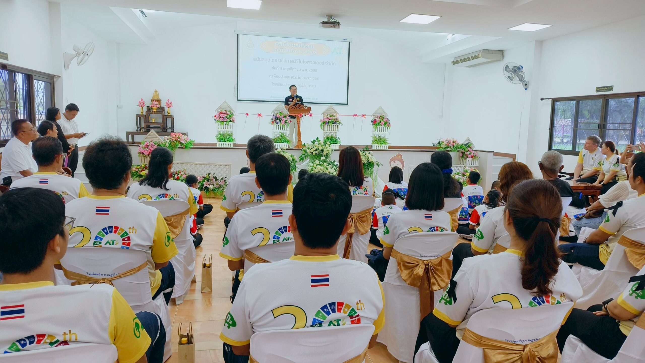 เมื่อวันที่ 11 พฤศจิกายน 2568 บริษัท เอ.ที. ไบโอพาวเวอร์ จำกัด (“เอทีบีพี”) มีความยินดีเป็นอย่างยิ่งที่ได้จัดพิธีเปิดหอประชุมที่ได้รับการปรับปรุงใหม่อย่างเป็นทางการ ซึ่งประกอบด้วยเครื่องฉายภาพและจอภาพใหม่ รวมถึงห้องน้ำและอ่างล้างมือที่ได้รับการปรับปรุงใหม่ สำหรับโรงเรียนบำรุงราษฏร์วิทยาคม ซึ่งเป็นโรงเรียนประถมศึกษา ตั้งอยู่ไม่ไกลจากโรงไฟฟ้าที่อำเภอบางมูลนาก จังหวัดพิจิตร ในพิธีเปิดอย่างเป็นทางการครั้งนี้ บริษัทฯรู้สึกเป็นเกียรติที่ได้ต้อนรับทั้งผู้อำนวยการโรงเรียนและแขกผู้มีเกียรติในท้องถิ่น รวมถึง นายกเทศมนตรีเทศบาลตำบลหอไกร ตลอดจนเด็กนักเรียนบางส่วนซึ่งเป็นผู้ที่จะได้ใช้ประโยชน์จากสิ่งอำนวยความสะดวกใหม่นี้เข้าร่วมในพิธีเปิดครั้งนี้ด้วย
